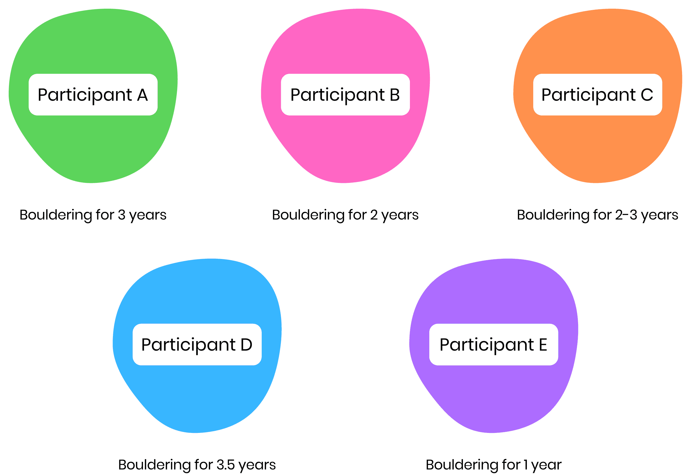 Interviewed five participants, about their experiences at bouldering.