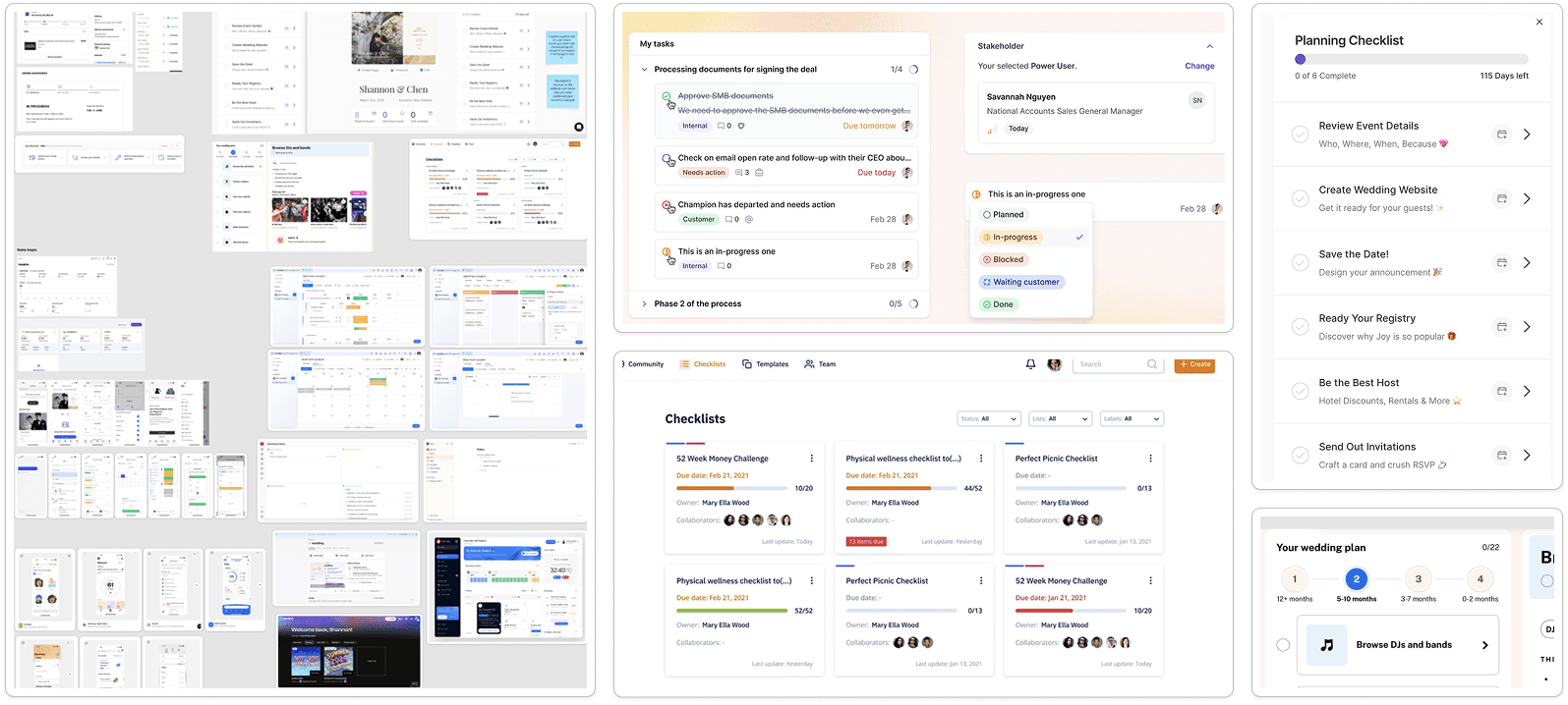 Looked for some reference ideas for timelines, task management software, deadlines and statuses, dashboards and different screen sizes